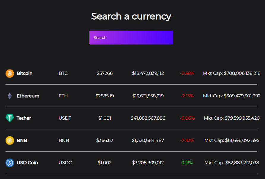 This is a crypto tracking app using Coin Gecko API that allows you to search and view the most popular cryptocurrencies. This project uses React and Axios along with the API to gather the cryptocurrency data.